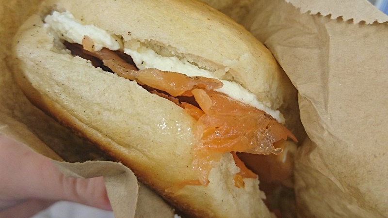 被旅伴帶來朝聖兼覓食的貝果店,似乎是他喜歡的樂團成員的愛店。點了貝果夾燻鮭魚和鹹奶油起司,重口味但是好吃。