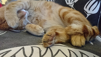 等待的期間,圍著正在睡覺的店貓拍照。(之後發現被店家捕捉放到粉專上,好好笑)